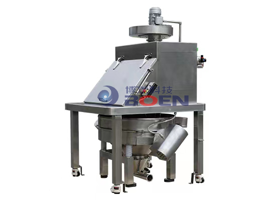 无尘投料站主要由下料口、筒体、气动阀门、电器控制系统等组成。当需要投放物料时,通过电器控制系统打开气动阀门,物料便会从上方输送到筒体内部,经过振动筛分后落入下料口,实现物料的准确投放。