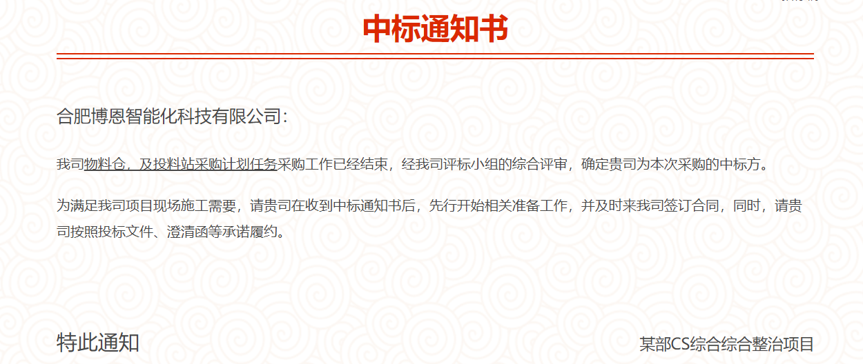 我司中标某部设备采购项目